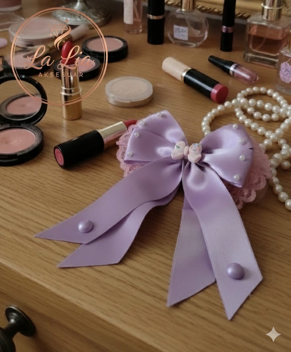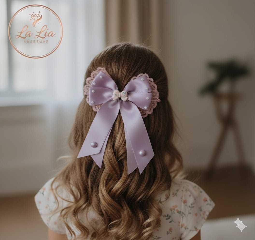 Lila Fiyonk Kurdele Saten Otomatik Klipsli Toka