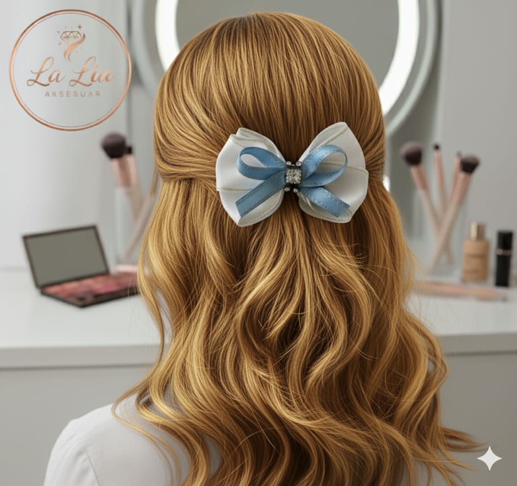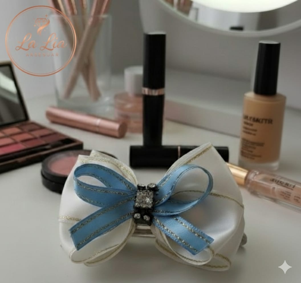 Saten şeritlerden özenle üretilmiş el yapımı la lia ürünüdür, büyük boy otomatik metal klipslidir. Özel kutusunda gönderilir.