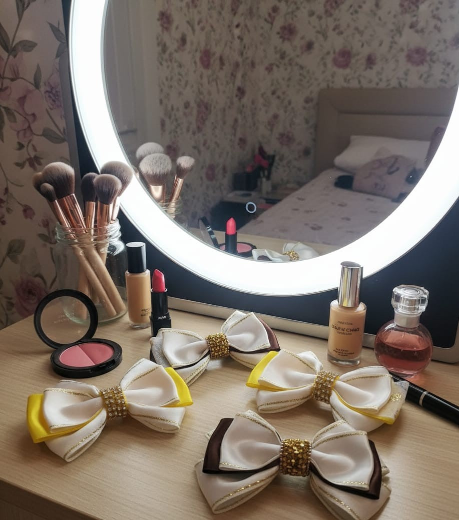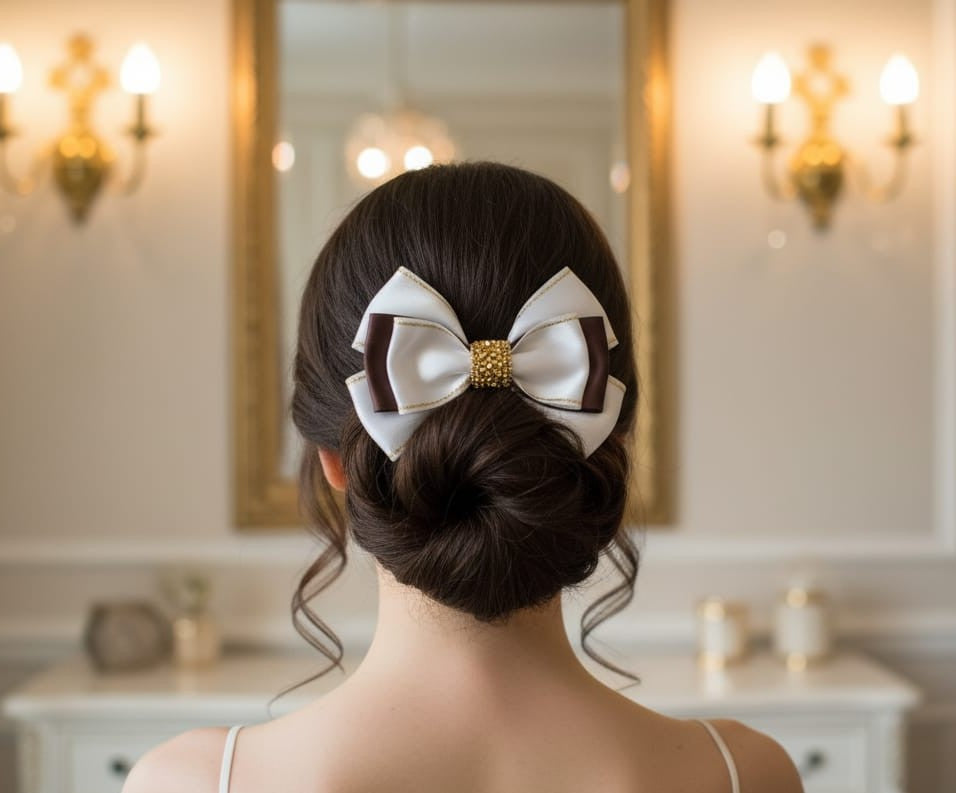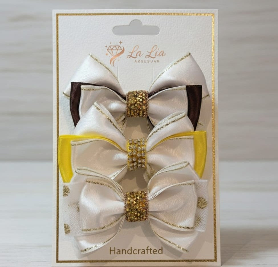 Saten şeritlerden özenle üretilmiş el yapımı la lia ürünüdür, orta boy otomatik metal klipslidir. Özel kutusunda gönderilir.