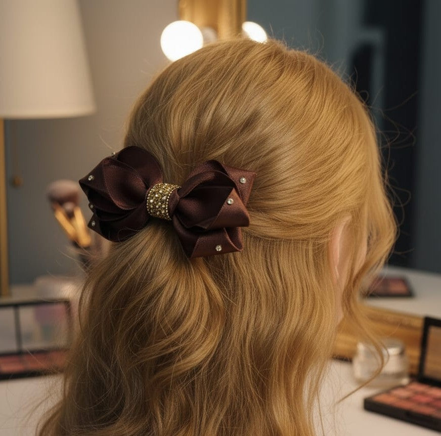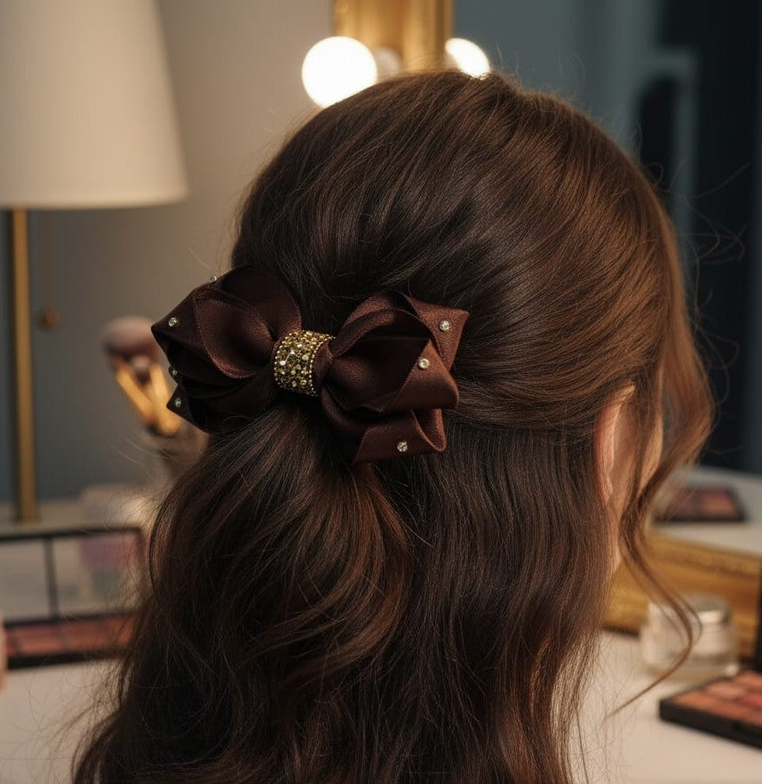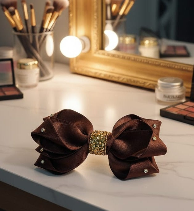 Lia Kahve Fiyonk Özel Tasarım Otomatik Klips Büyük Boy Toka